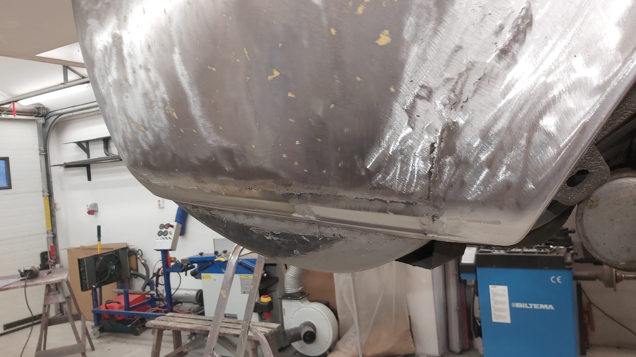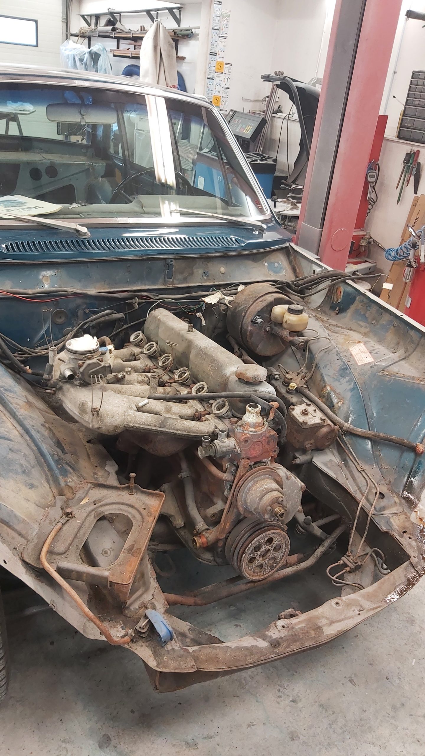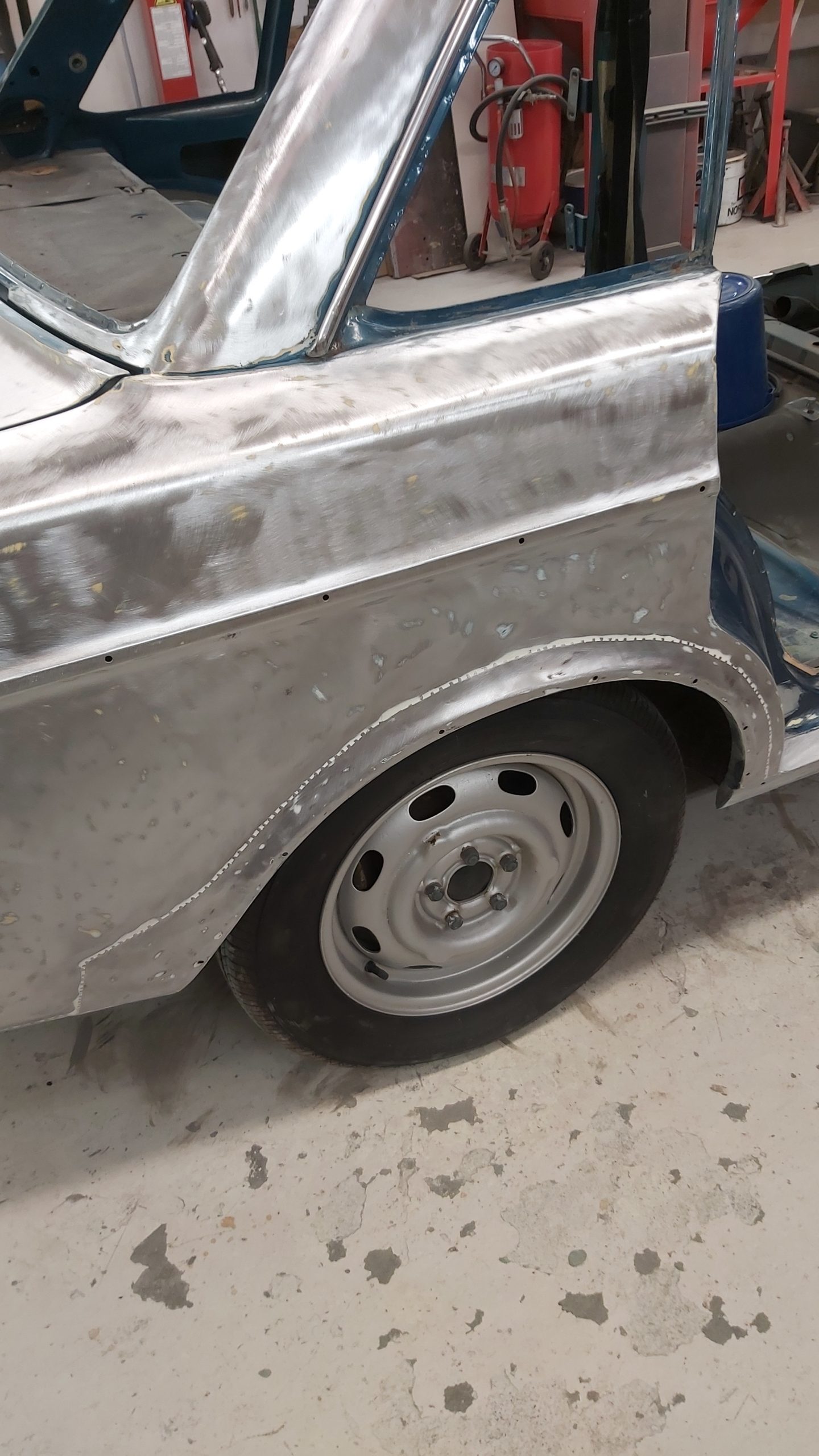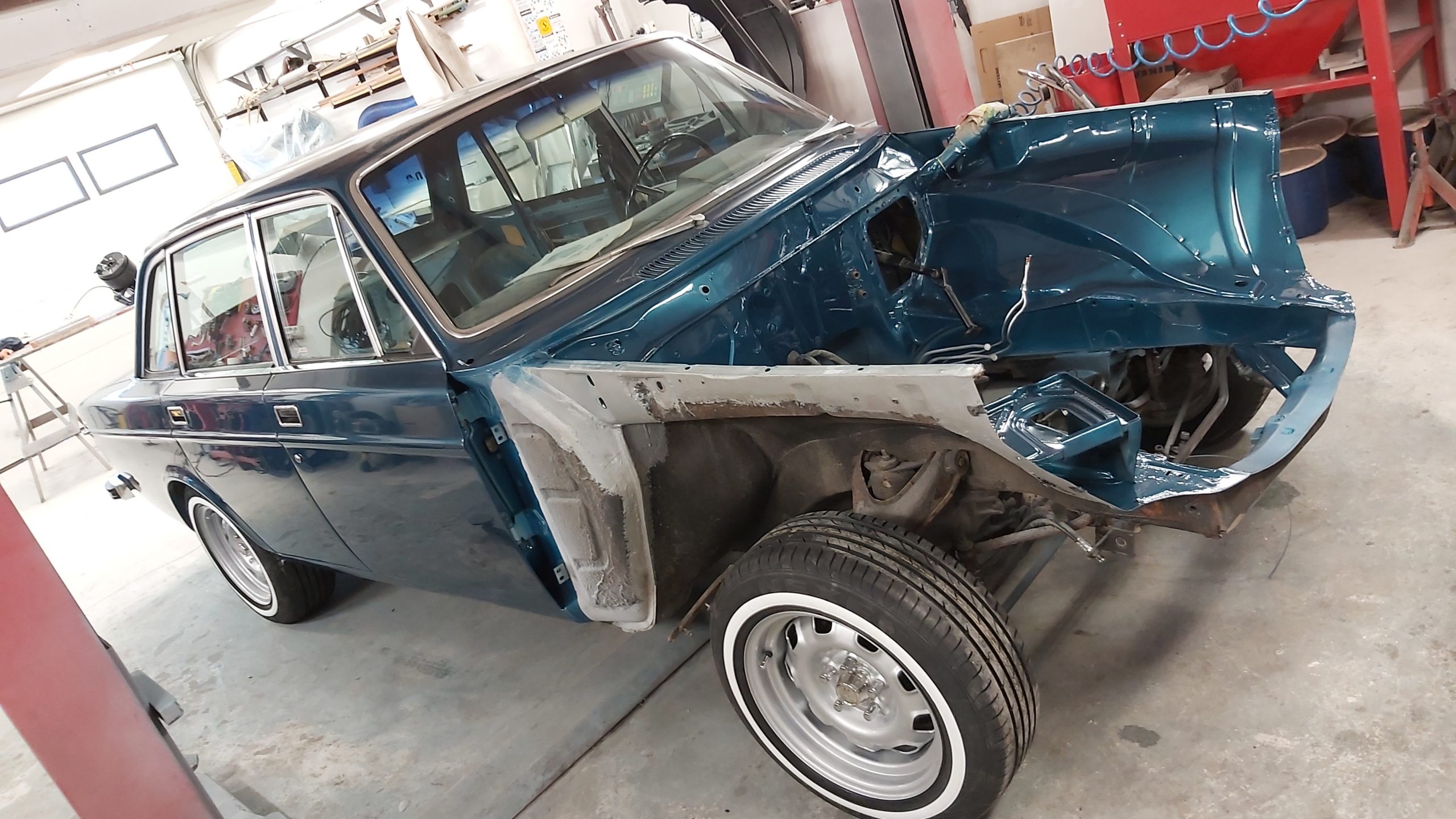 Rosten som behöver lagas finns i dörrar och vänster framskärm samt i frontinfästningen. Även runt rutan fram behöver det svetsas.