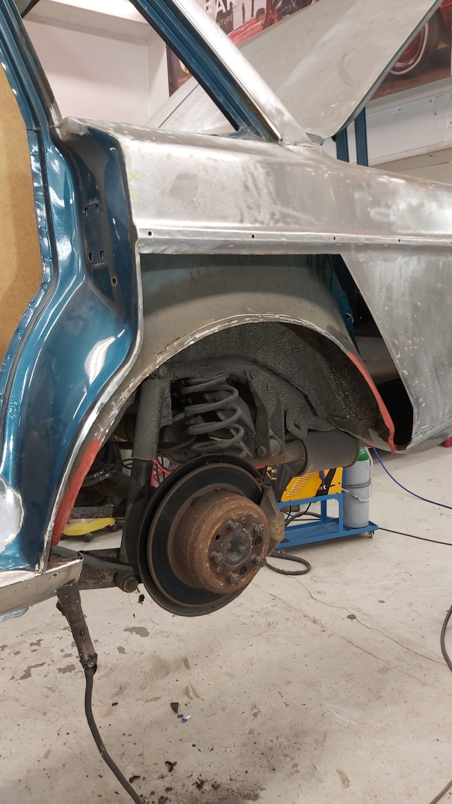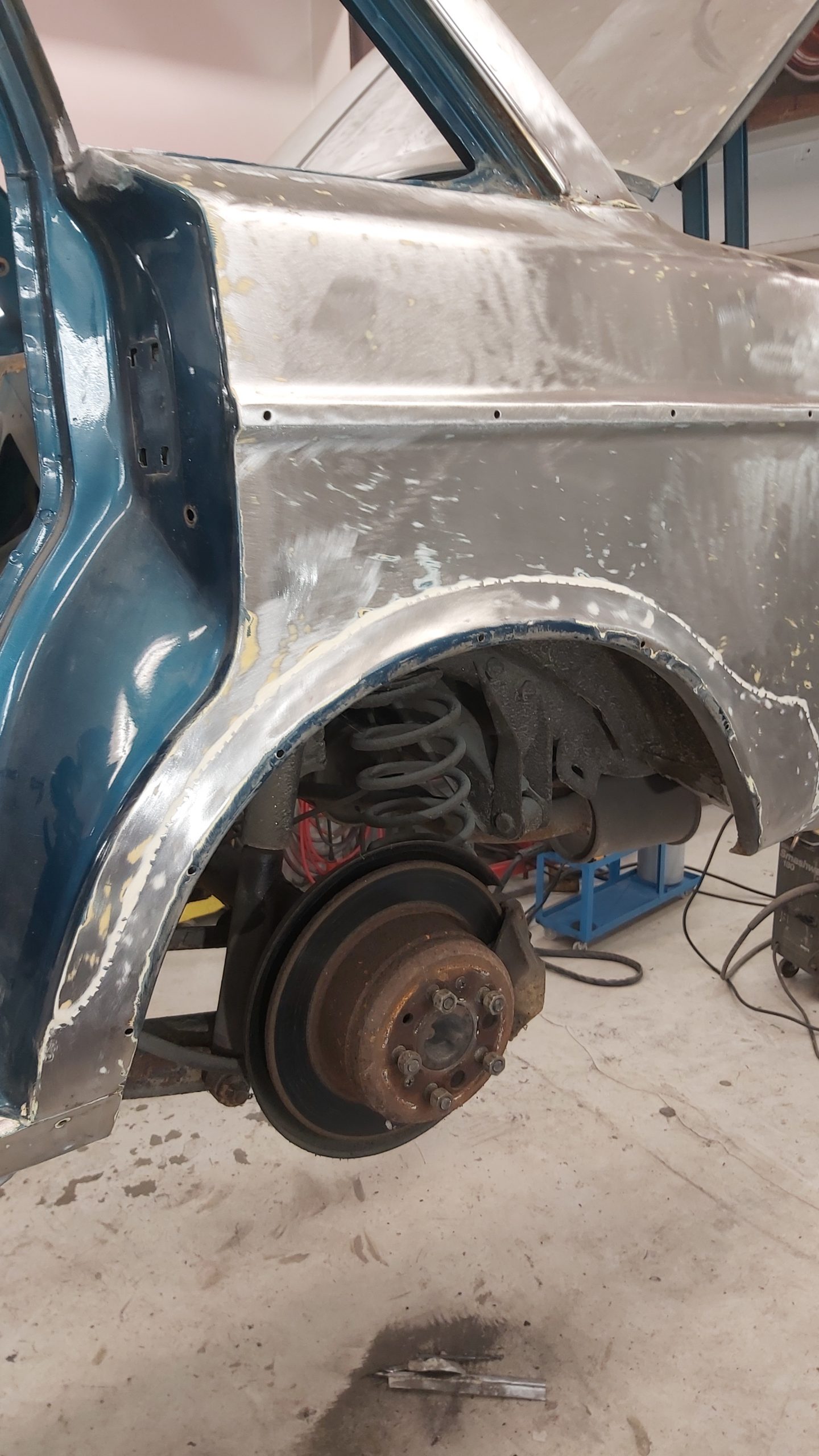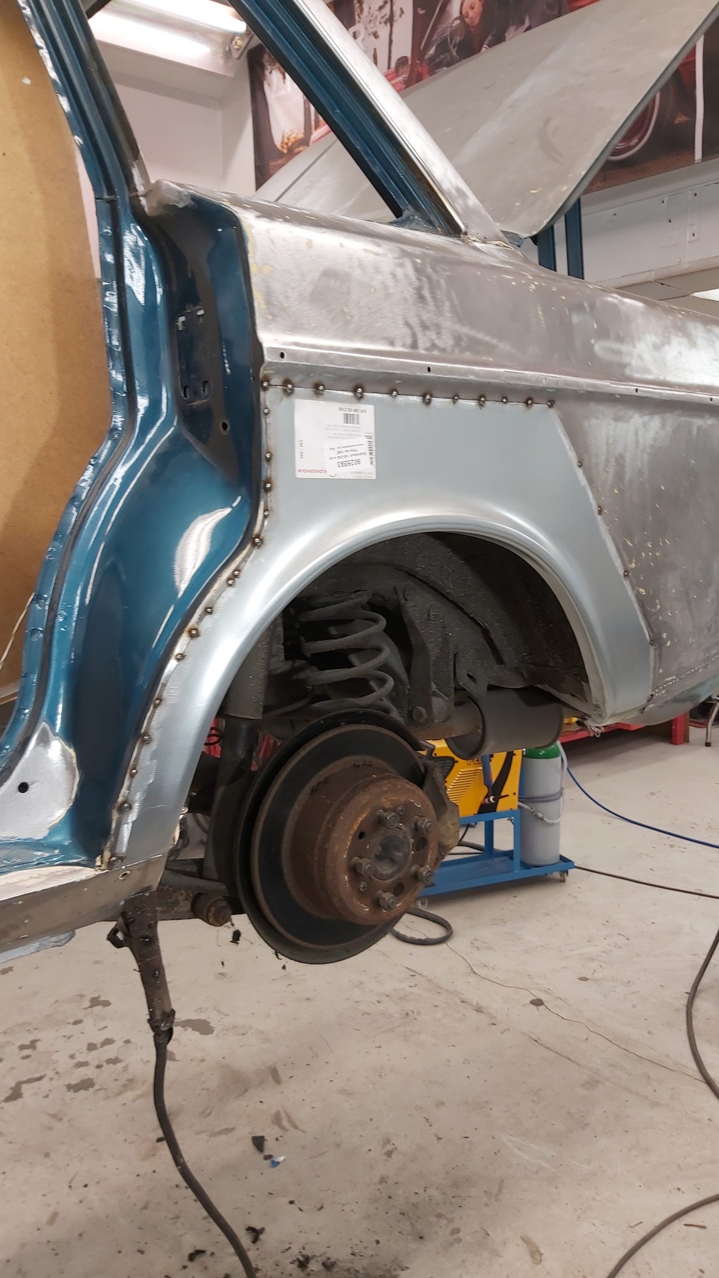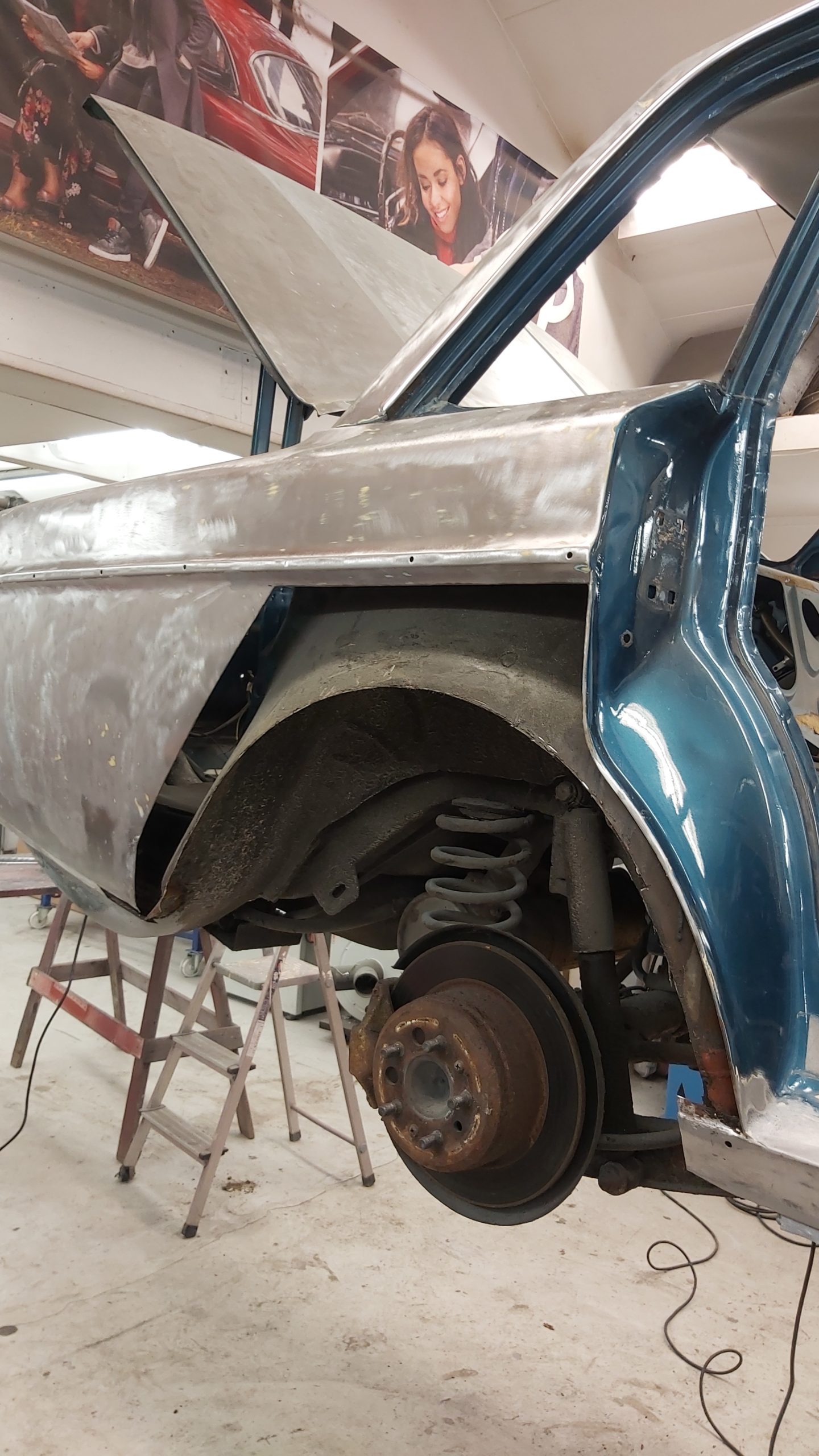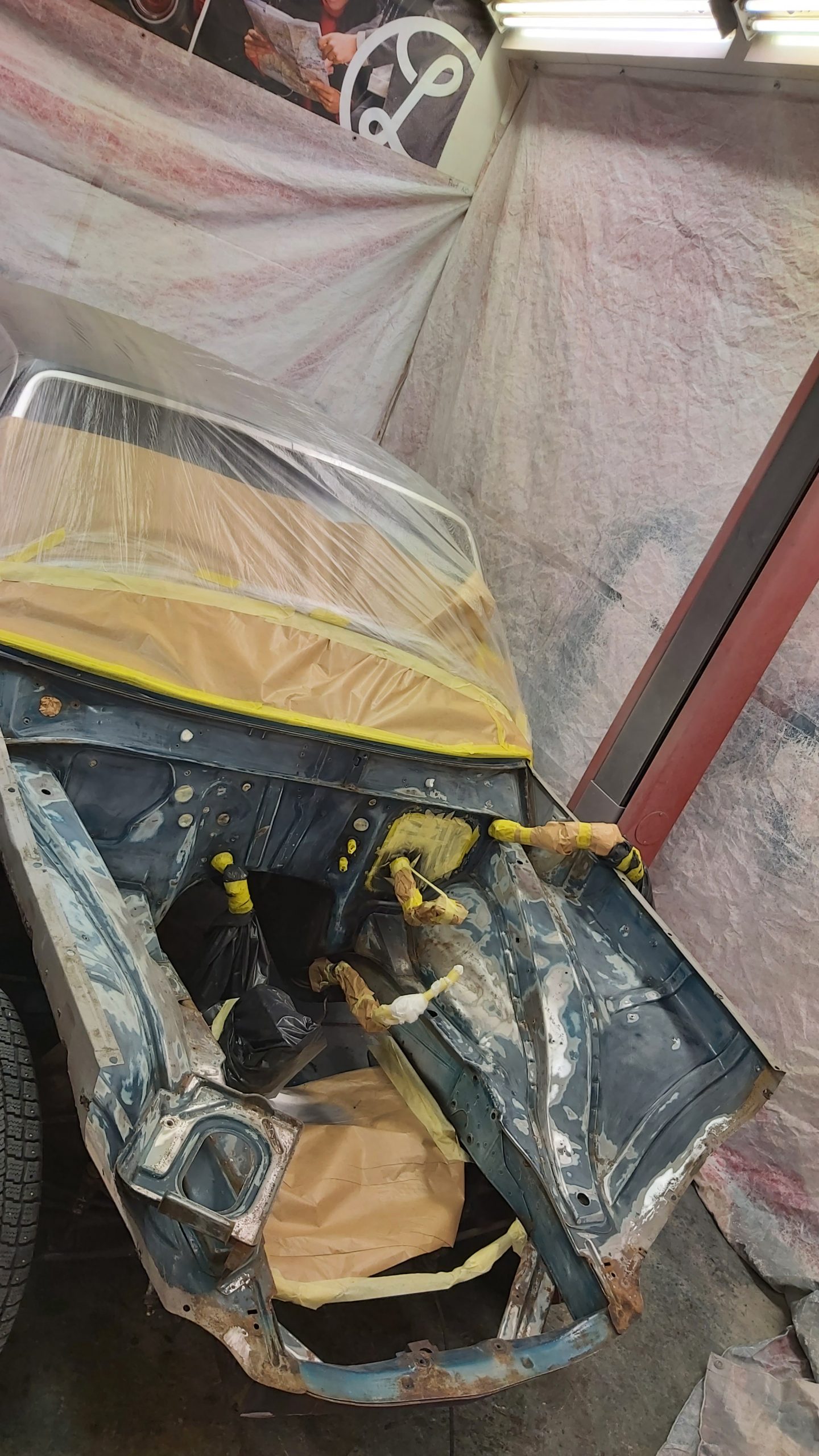 Rosten som behöver lagas finns i dörrar och vänster framskärm samt i frontinfästningen. Även runt rutan fram behöver det svetsas.