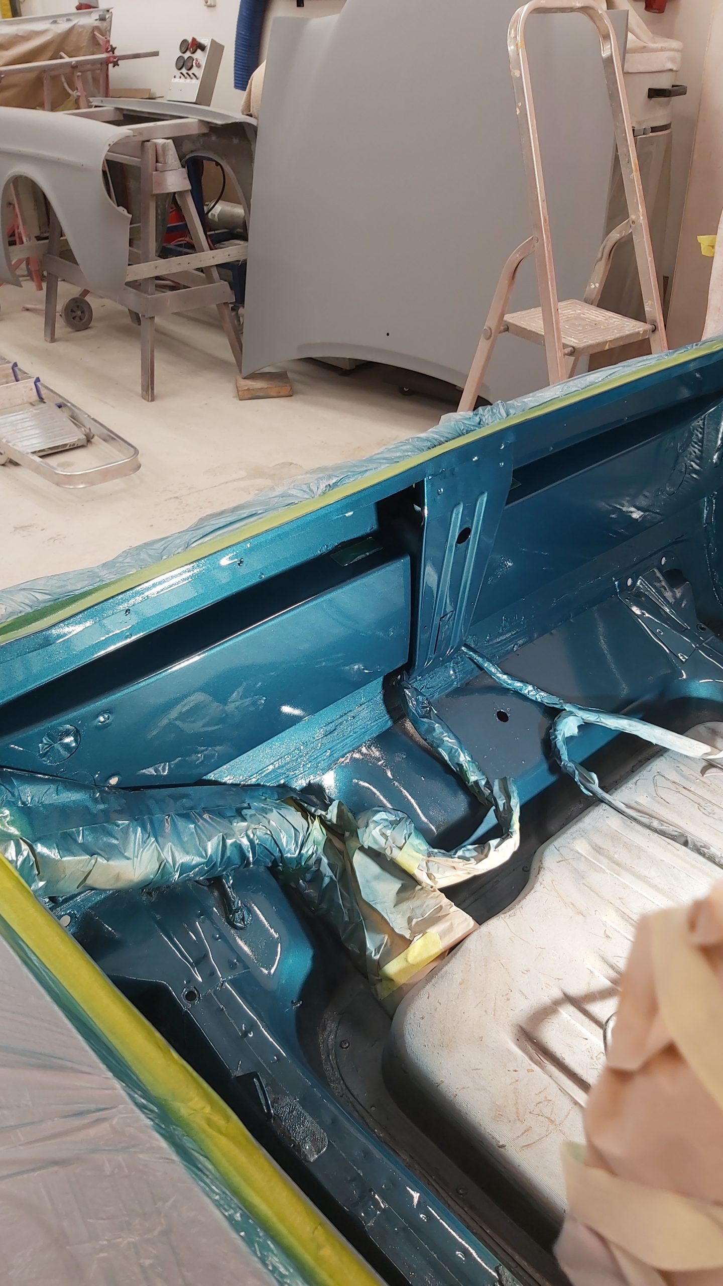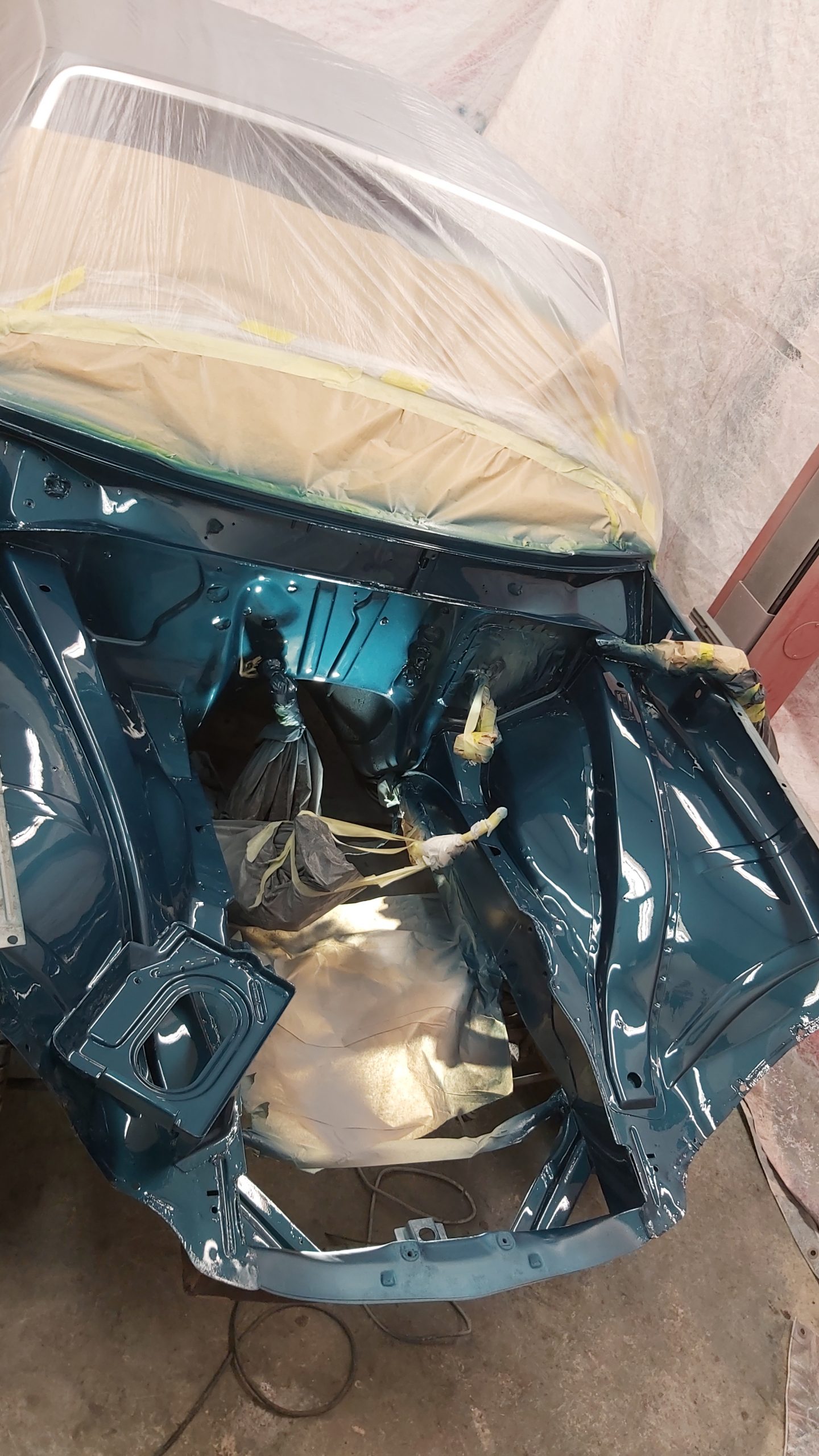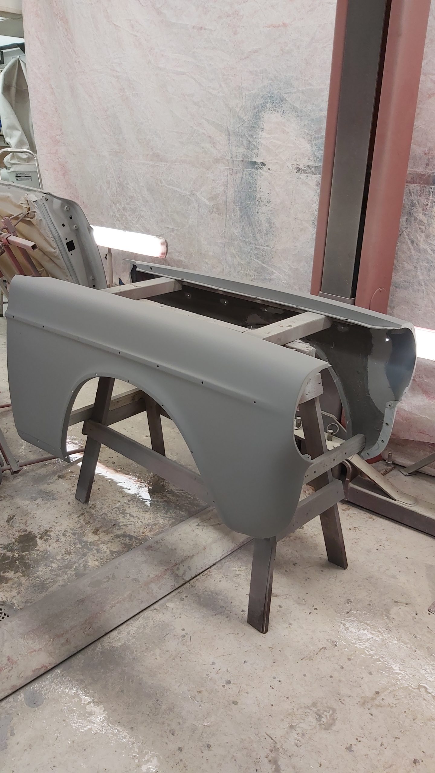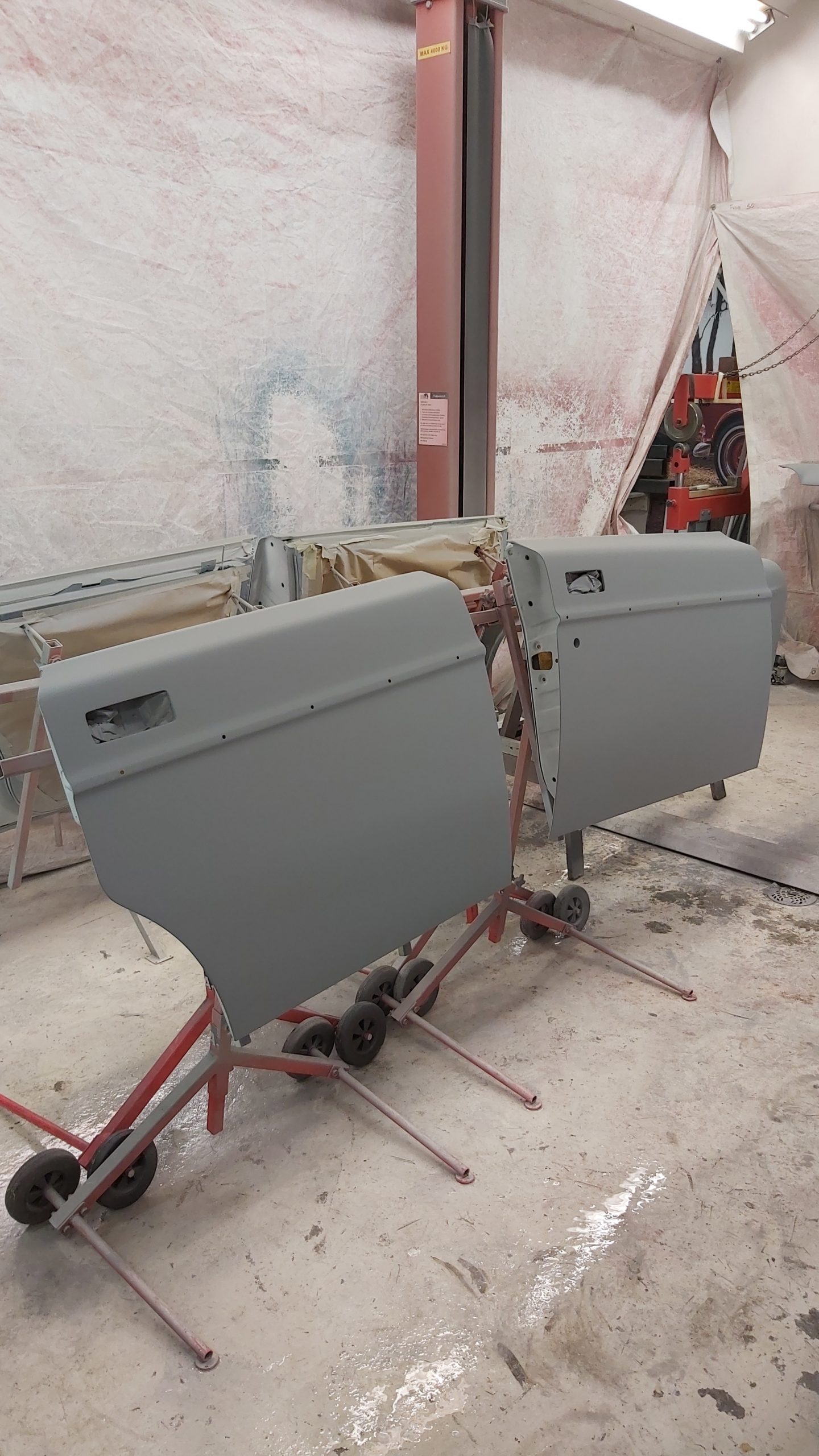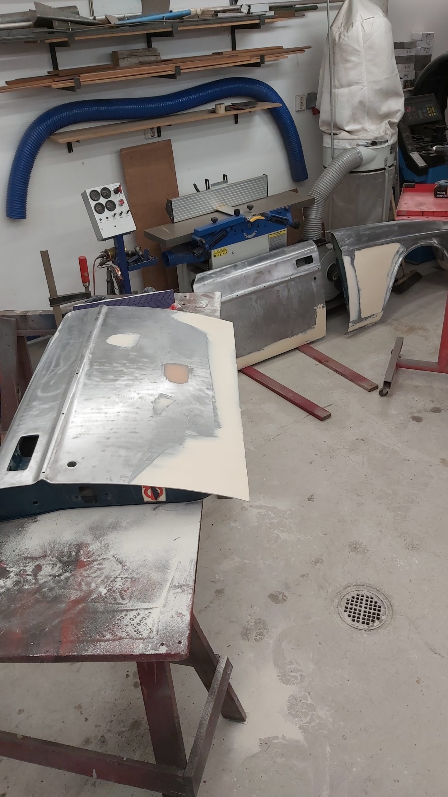 Hela bilen görs plåtren innan lackering.