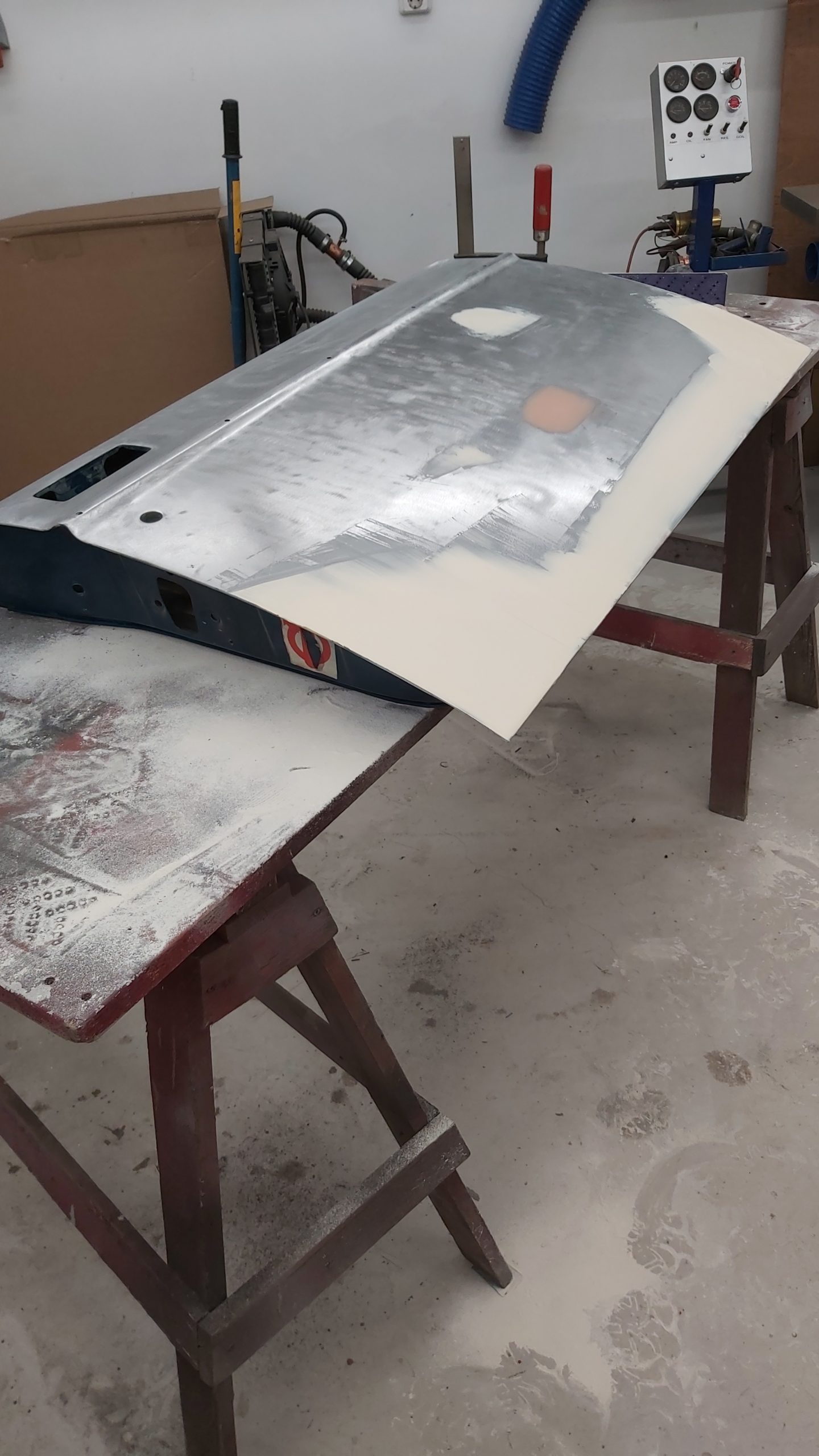 Nu börjar den roligaste fasen :), lackering. 2 lager epoxy grund, 3 lager slipgrund, 3 lager metalicbas och 2 lager klarlack.