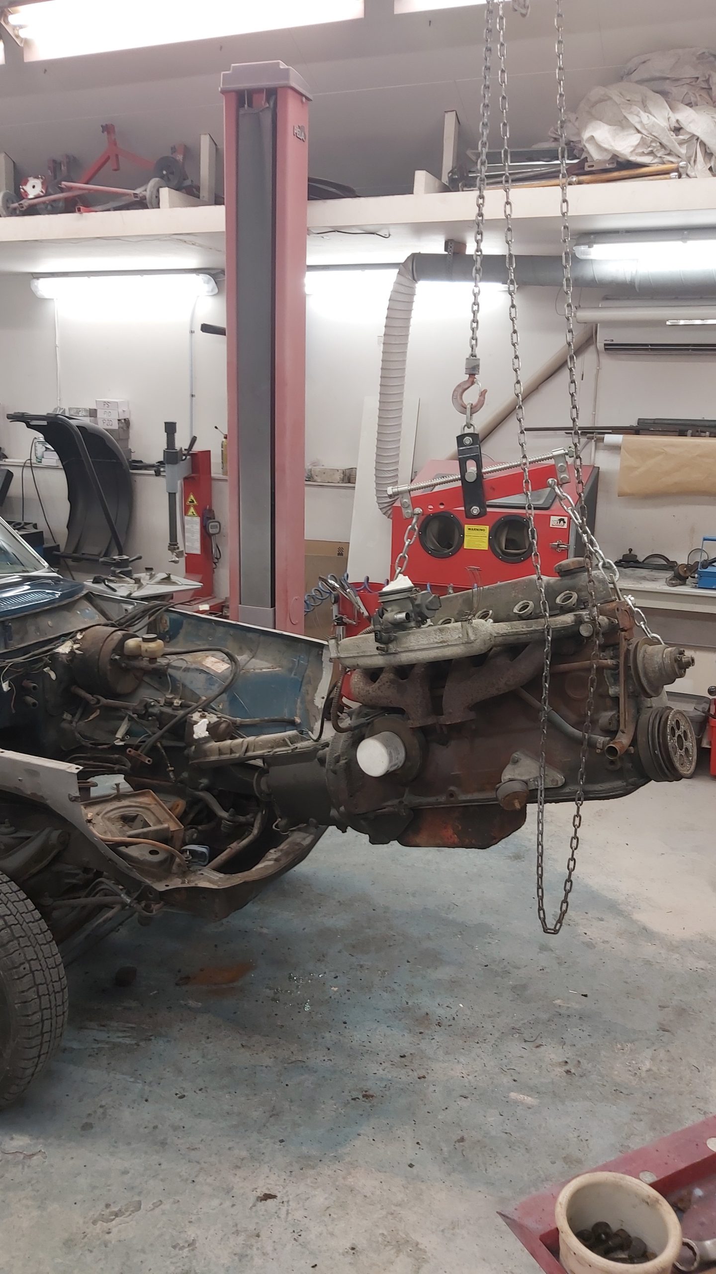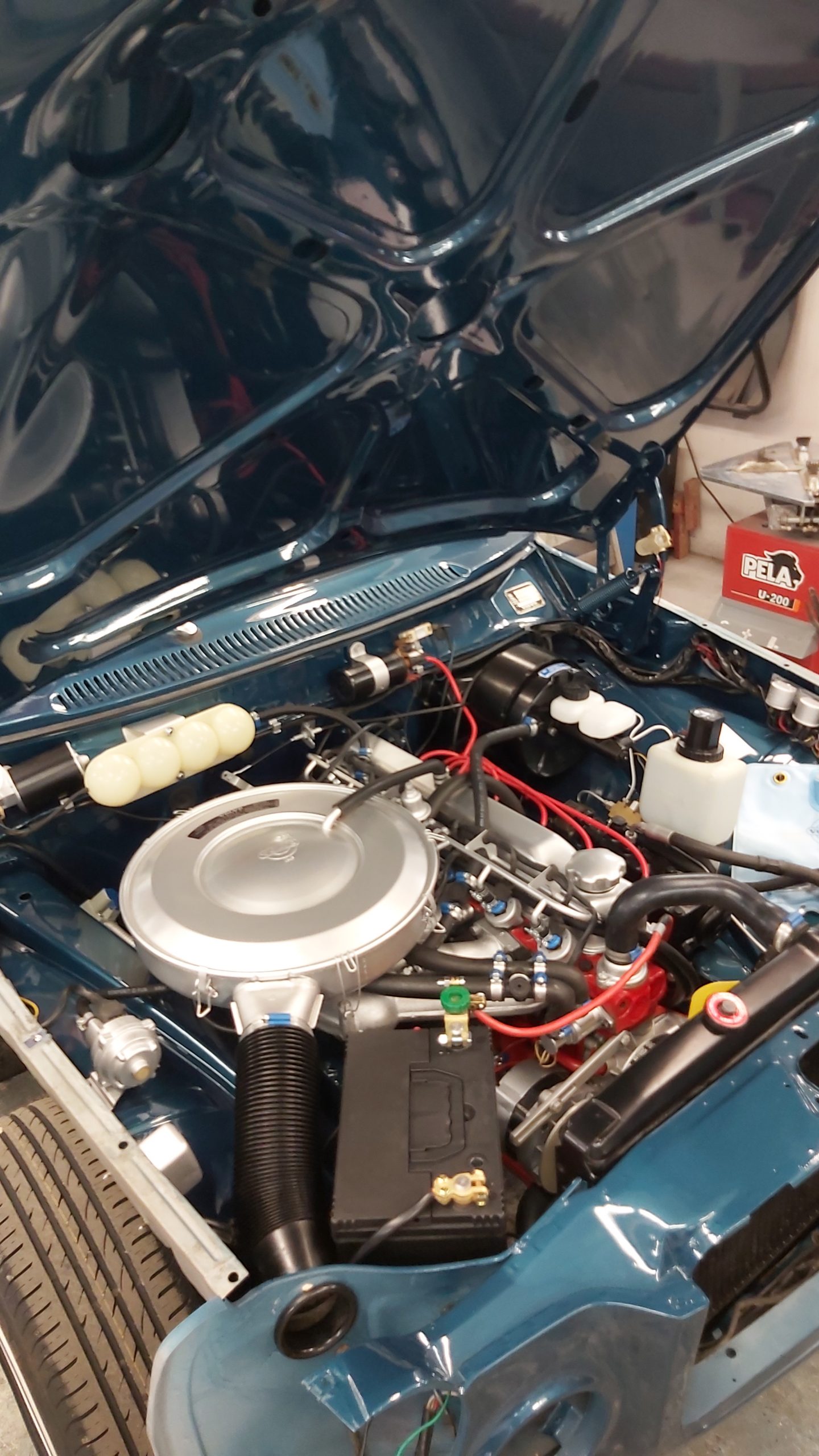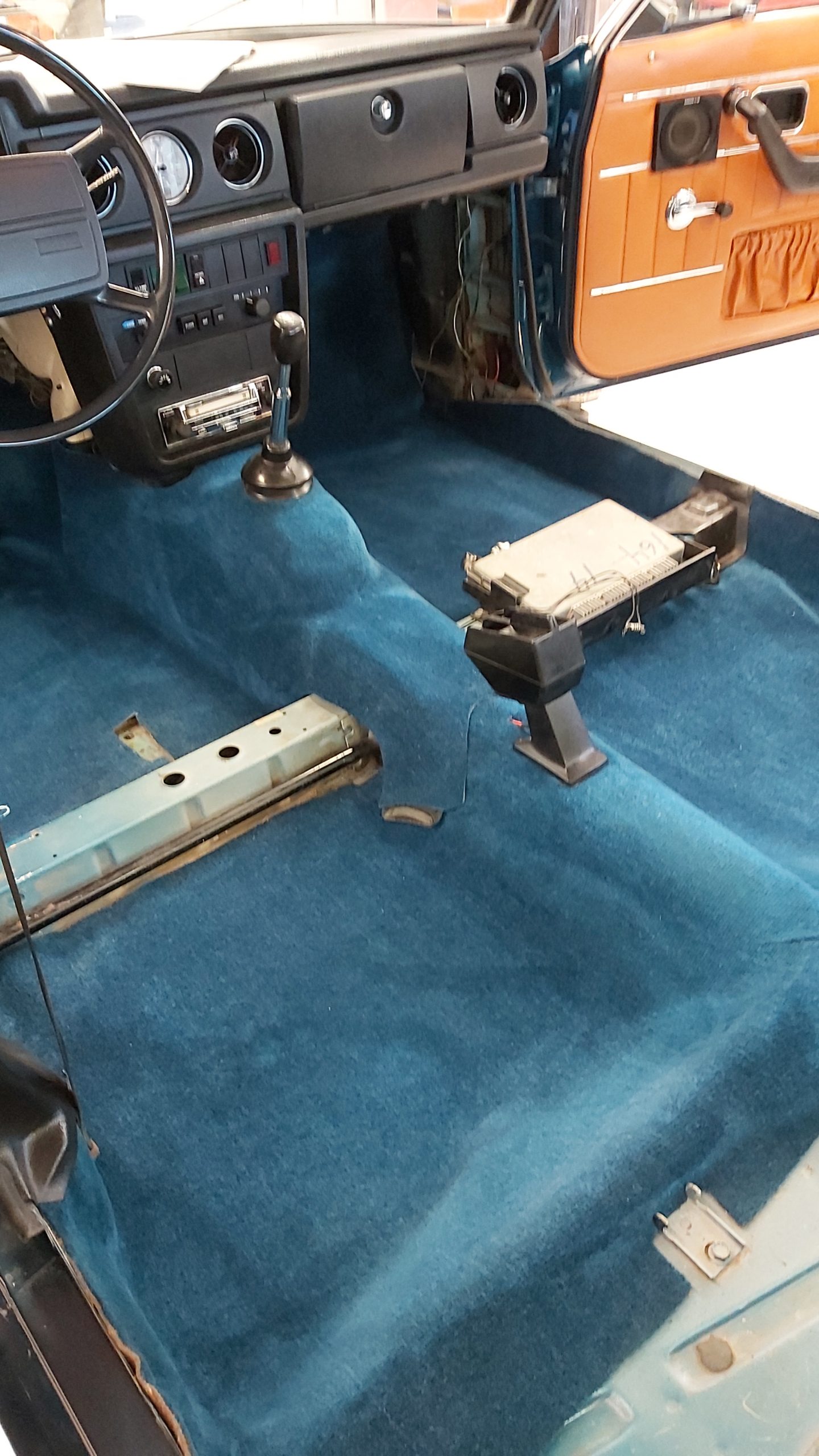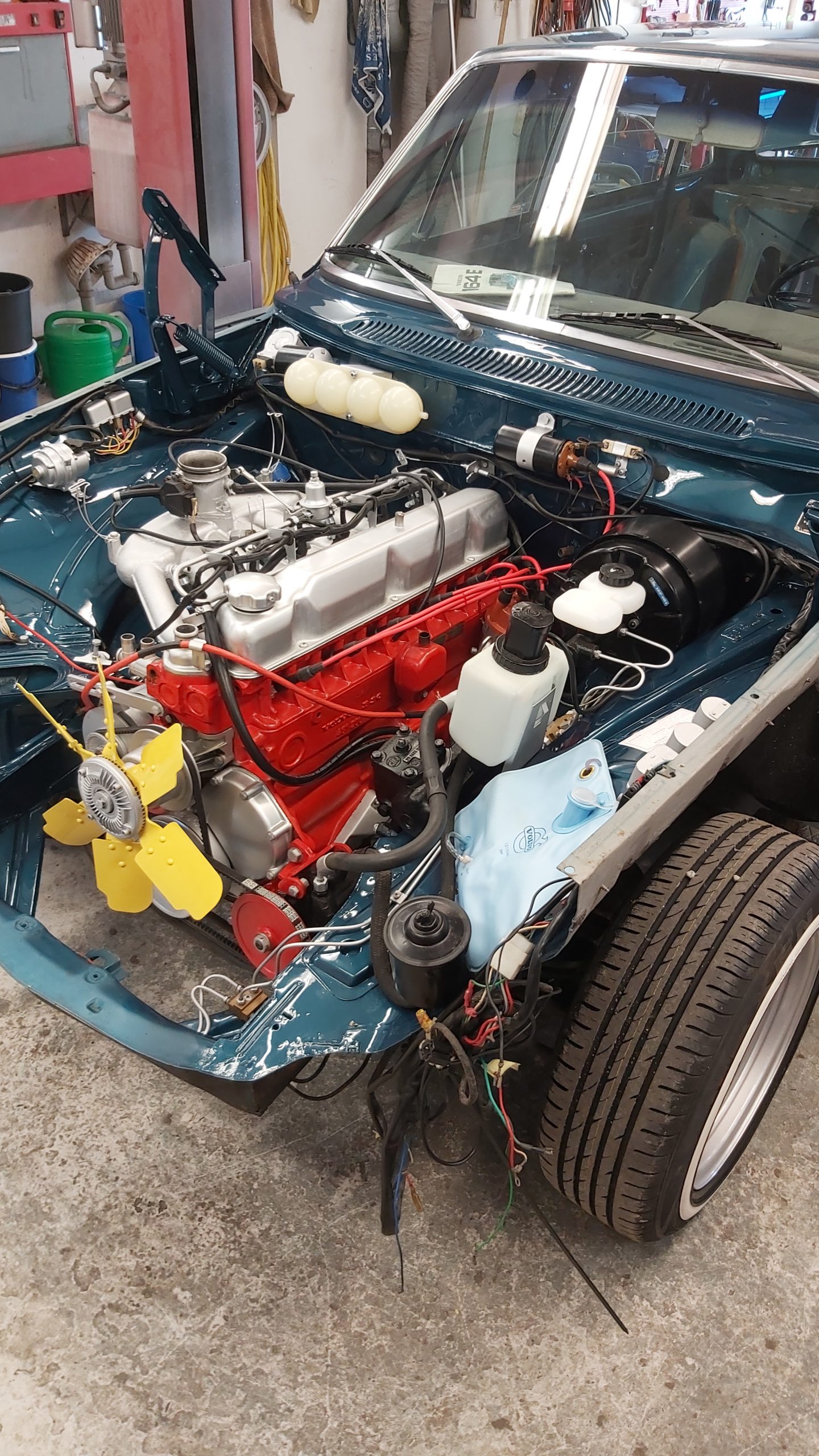 Motor och motorrum skall också få en översyn . Växellådan skall uppdateras till en M410 med overdrive som kommer att lira bra med 73’ans bakaxel som har 3,54 i utväxling. Detta kommer att ge ett bekvämt motorvara på 2250 rpm vid 100 km/h om man lägger på 215/65 däck bak.