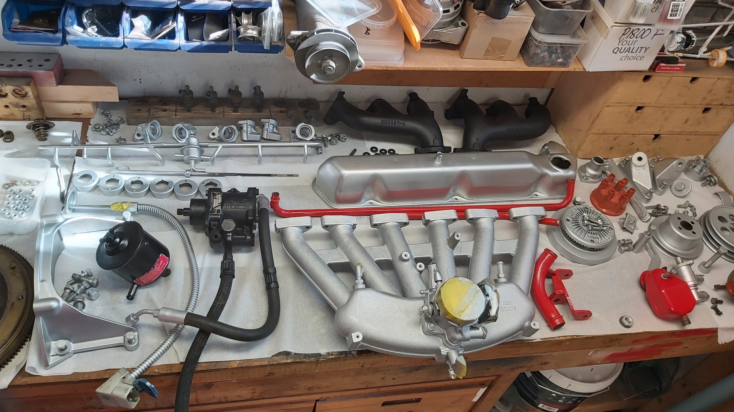 Alla delar glasblästras innan återmontering i motorrummet.