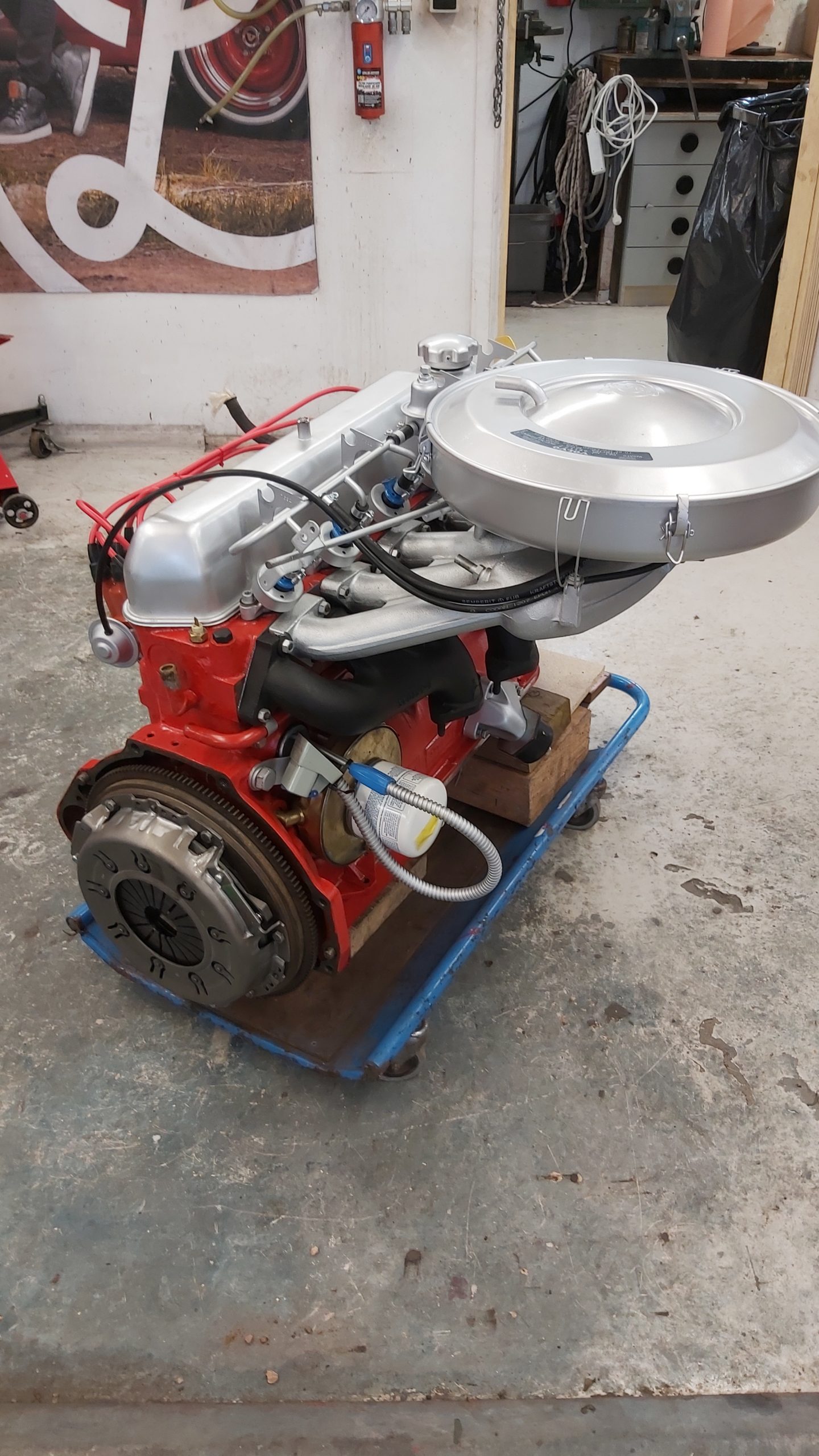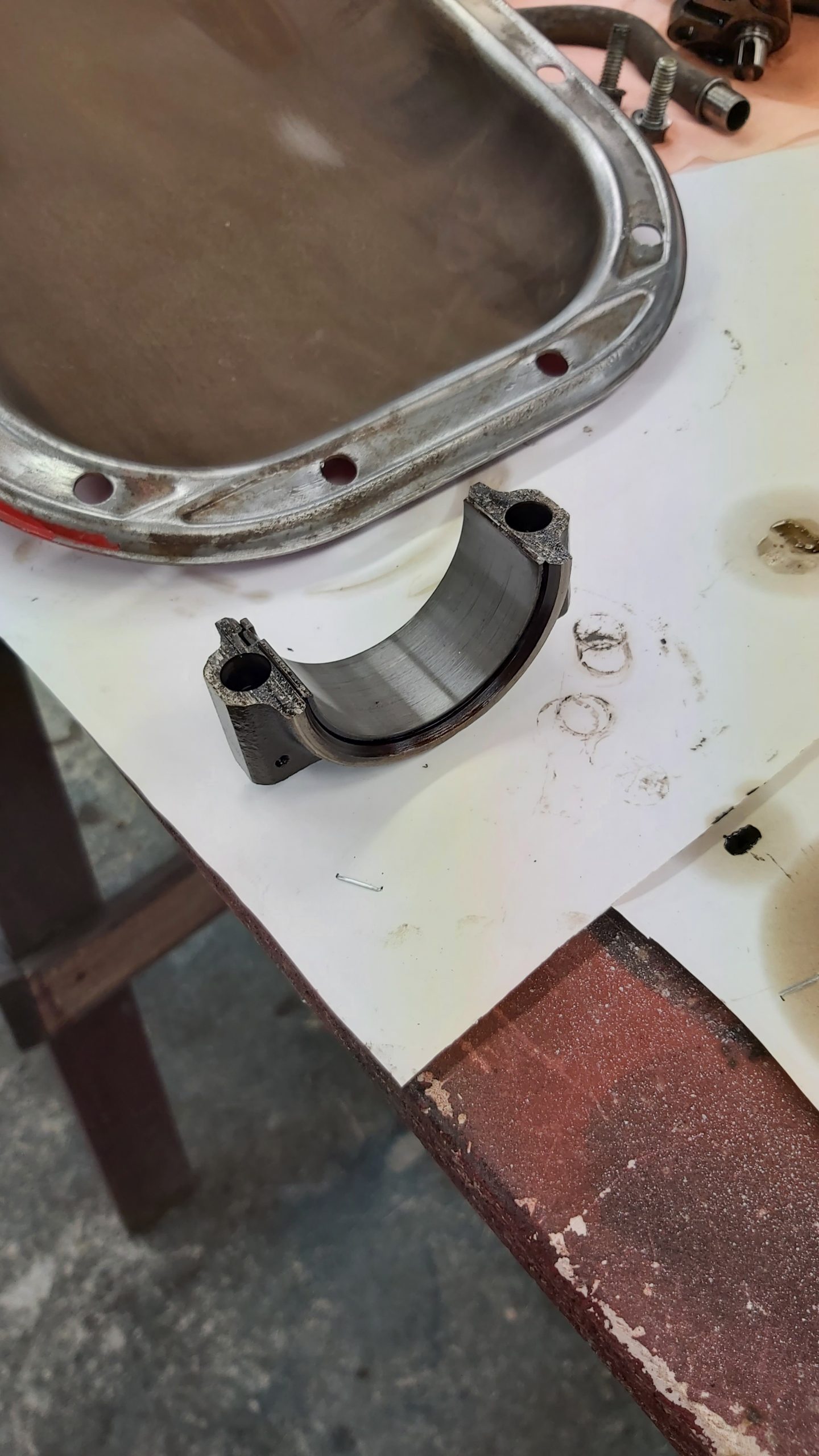 komp. test visade att alla cylindrarna låg runt 12kg och vid kontroll av lager så var även dessa bra. Denna motorn har varit renoverad tidigare. Dock var kuggflankspelet på både kamaxeldrev och oljepump för stort så dessa byttes ut.