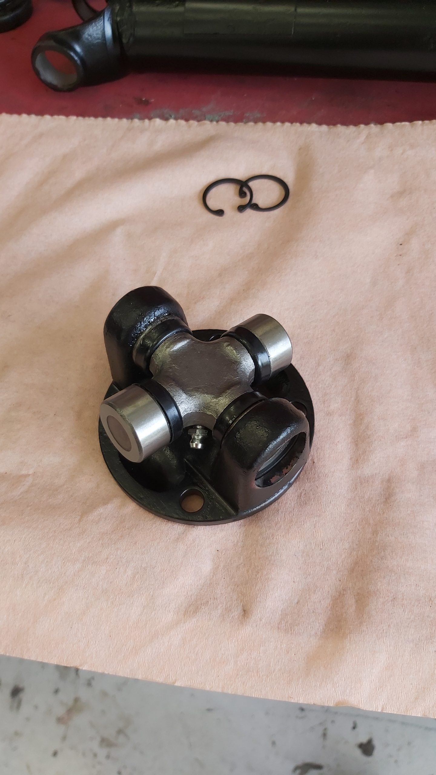 Kardanaxeln renoveras och kortas av för att passa till overdrive lådan.