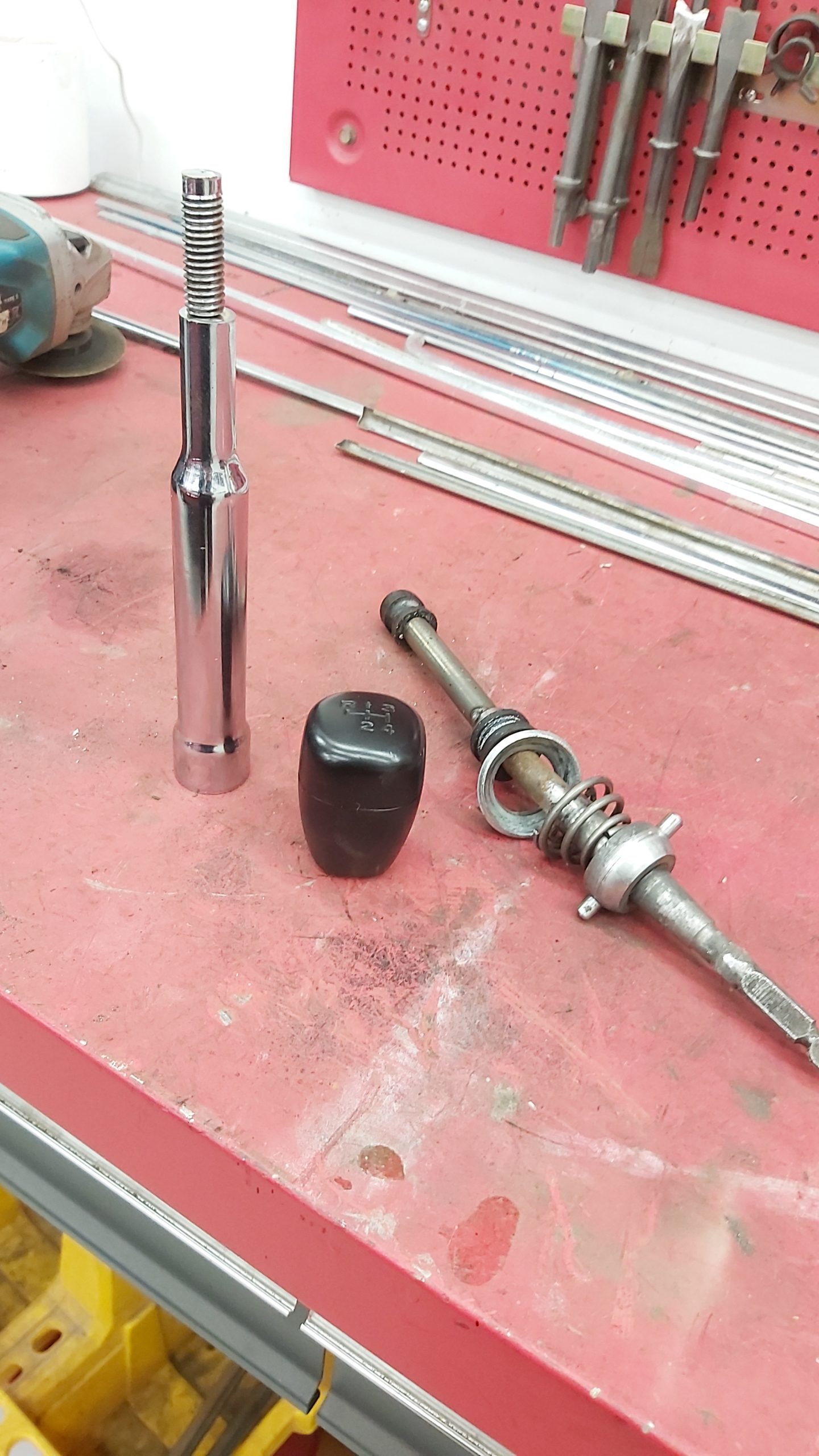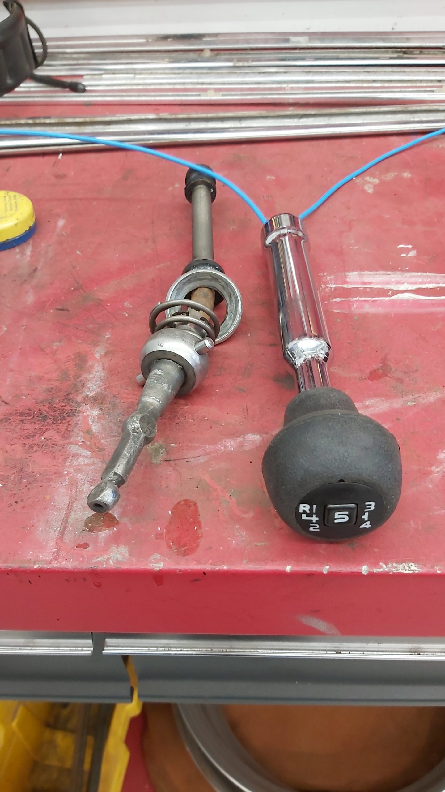 Då det var helt omöjligt att få tag i en original OD-spak så fick det bli en modifierad alá 80-tal ?.