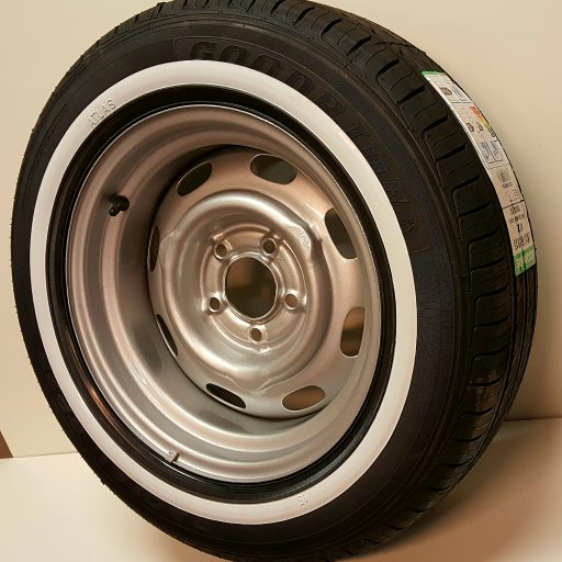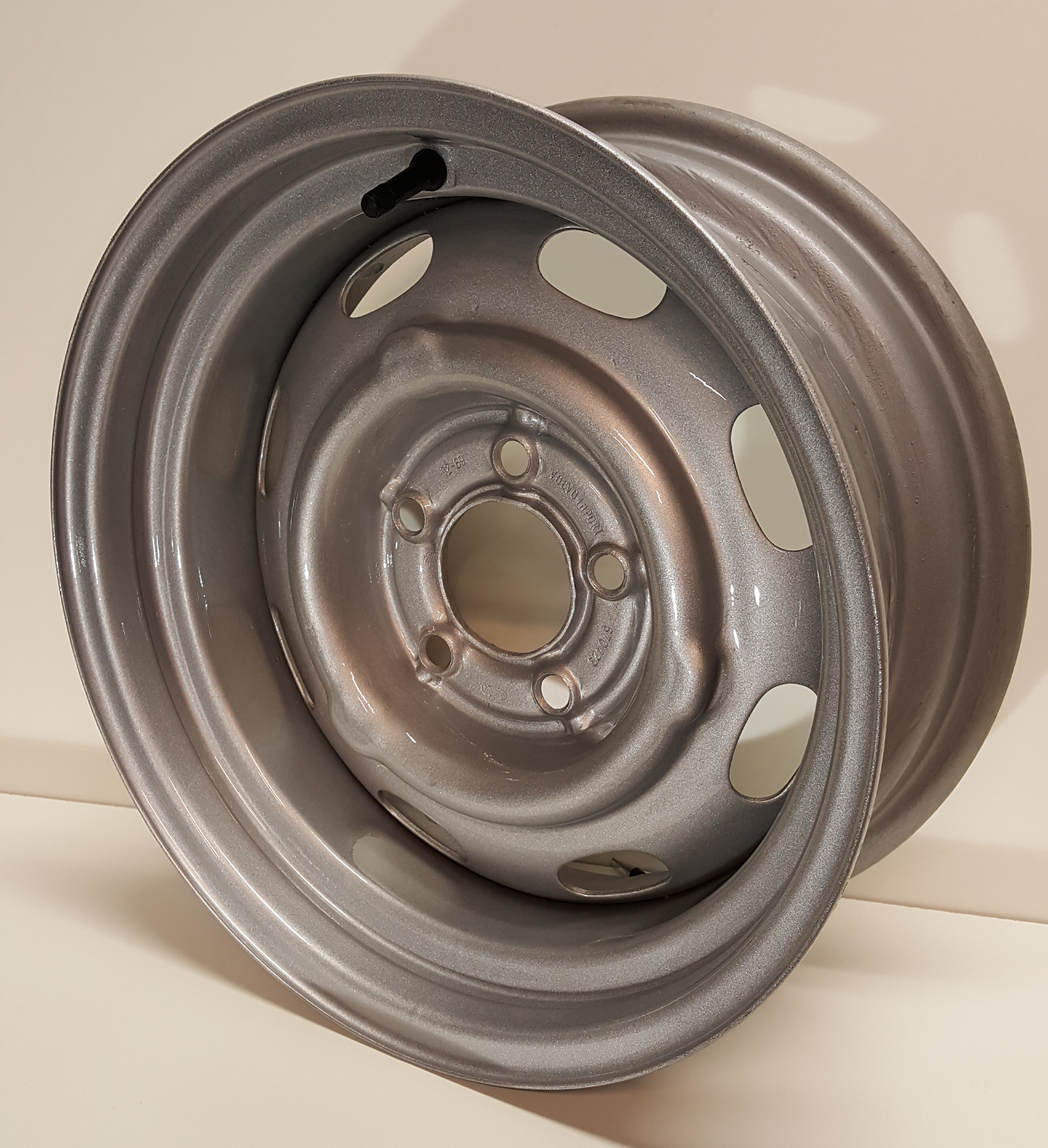 Volvo 140 6,5″ fälg Breddade beg. fälgar.Lackerade med Epoxy primer, slipgrund och 2K akryllack RAL9006Pris: 1595kr/st inkl. moms 215/65 däck.